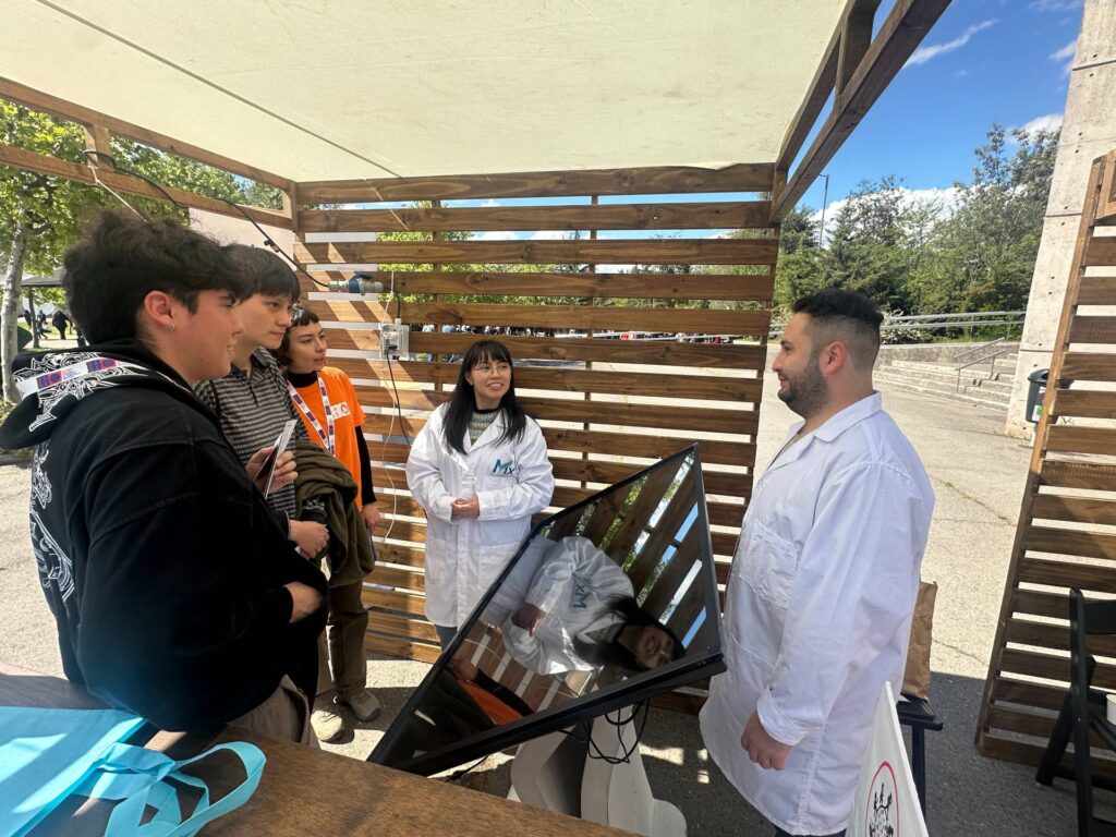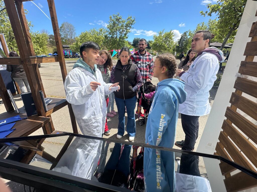 El domingo 5 de octubre, el Núcleo AMXSA participó en el Festival de las Ciencias (FECI) realizado en el Museo Interactivo Mirador (MIM), con la “NanoRuleta de mitos o ciencia”, un juego interactivo que invitó al público a distinguir entre creencias populares y hechos científicos sobre la nanotecnología. En el stand participaron las y los investigadores Álvaro Correa, Donatila Milachay, Ignacio Illanes, Javier Marqués, Nicolás Bustos, Fabián Flores y Adriana Blanco, quienes guiaron la interacción con la ruleta y explicaron el porqué de las preguntas formuladas en ella con las y los asistentes, promoviendo una mirada crítica y curiosa sobre la ciencia de los materiales.
