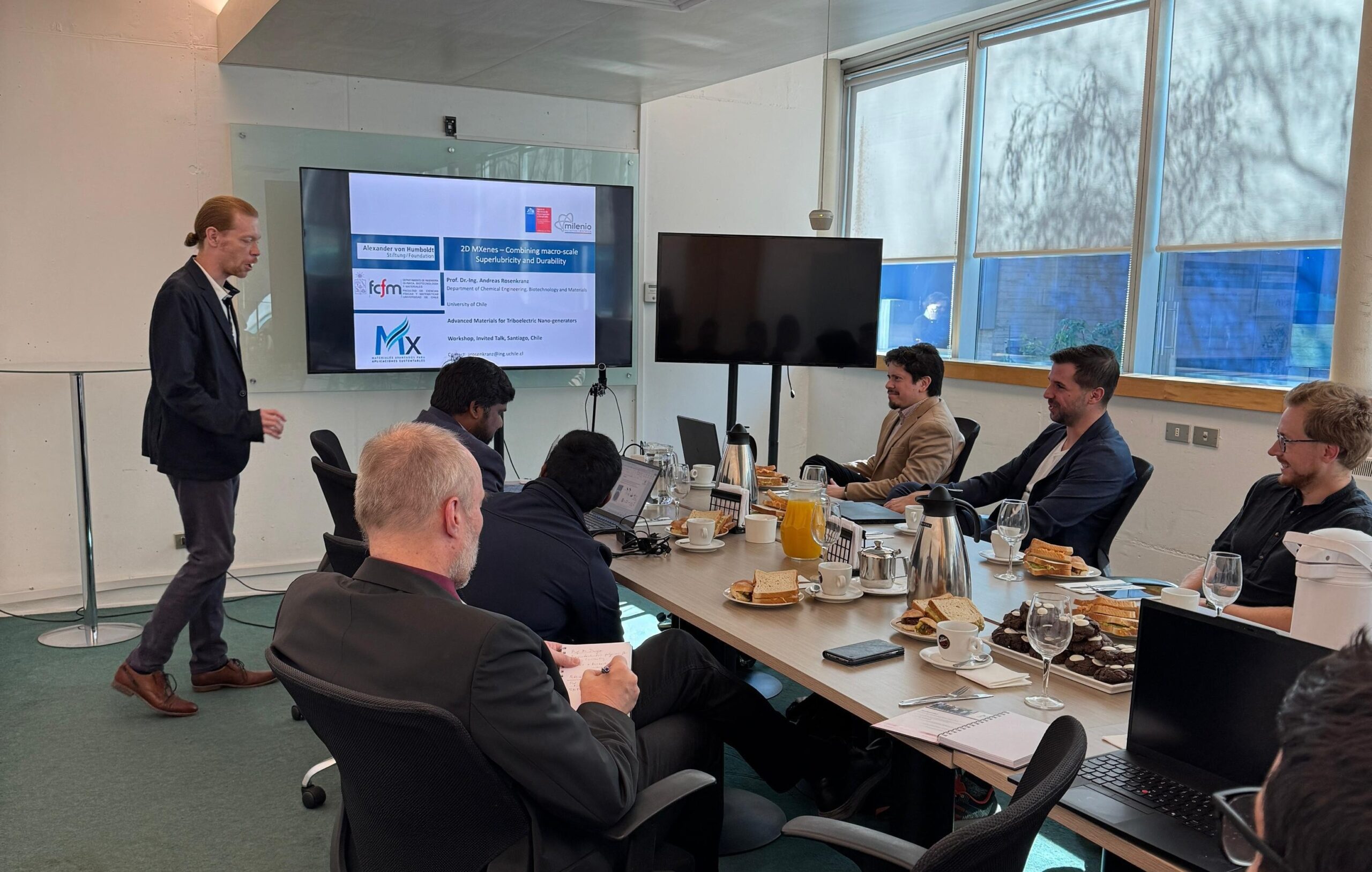 Finalmente, en la Pontificia Universidad Católica de Chile, el 26 de agosto, fue expositor en el seminario “New Materials for Tribo-electric Nanogenerators” con la charla “Materiales 2D y MXenes”. El evento abordó los avances en Triboelectric Nanogenerators (TENGs) y presentó el proyecto binacional “Wear-resistant thin film-based triboelectric nanogenerators for self-powered sensing”, cofinanciado por la Agencia Nacional de Investigación y Desarrollo (ANID) de Chile y la Fundación Alemana de Investigación Científica (DFG).